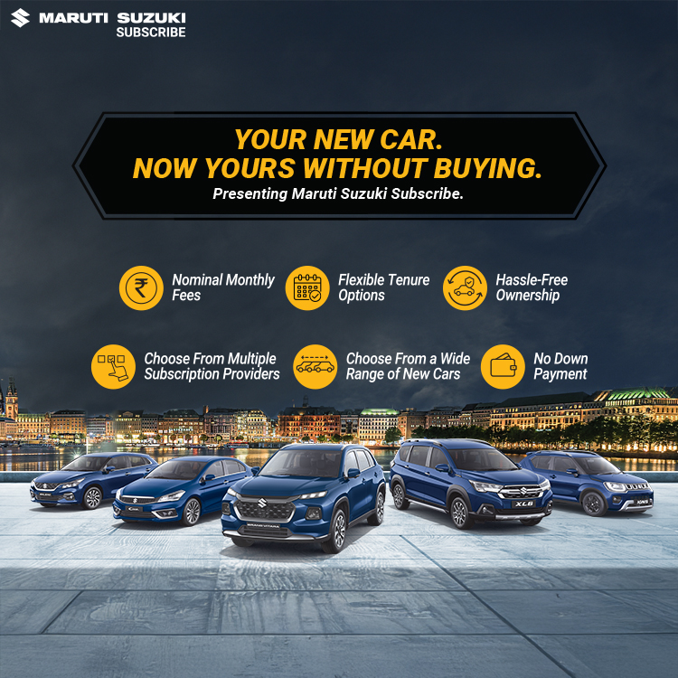 Maruti Suzuki Subscribe enables all customers to enjoy driving their preferred Maruti Suzuki cars without having to deal with all the financial responsibilities that come with owning a car.All you need to do is opt for a monthly subscription plan at a fixed monthly fee, which includes the routine maintenance and insurance costs, and choose a flexible tenure. At Kataria Automobile in, , Ahmedabad, all Hatchback, Sedan, SUV, the MUV models line-up includes Baleno, Invicto, EVitara, Jimny, Ciaz, Ignis, Fronx, Grand Vitara, XL6. Here, you will enjoy Maruti Suzuki Subscribe benefits such as: